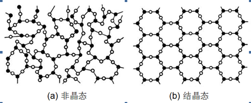 Schematic diagram of the two-dimensional arrangement of ions in different crystalline SiO2 (circles represent O2-; sunspots represent Si4+)