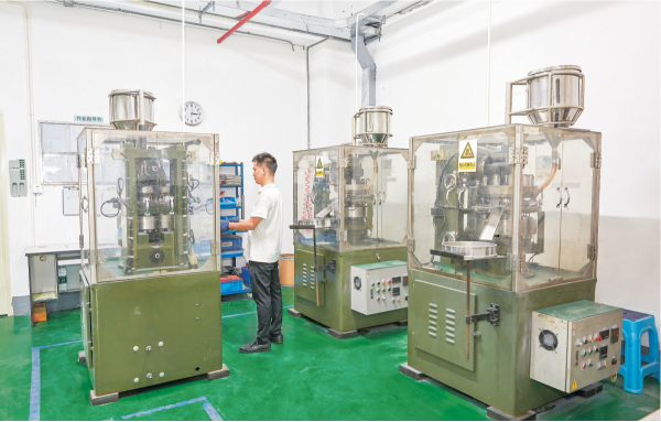 The company has production equipment such as glass extruder, glass green sintering furnace, chain sintering furnace, chain oxidation furnace, sandblasting machine, automatic welding machine, electric lock wire, etc., which can meet the requirements of different customers for production technology.